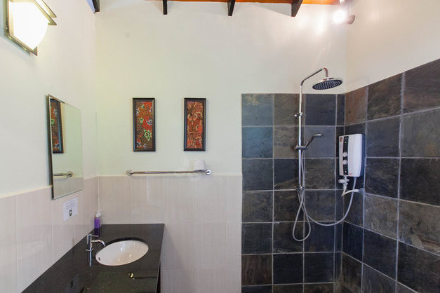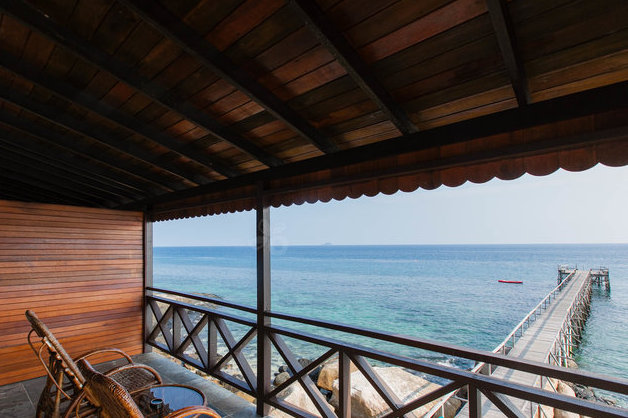 The Minang Beach Front Deluxe Chalet is a comfortable air conditioned, en-suite single story chalet, built to traditional styling with local wood furniture. The rooms are spacious and include their own veranda with stunning views over the cove. Each chalet can sleep up to 3 people in comfort. Please advise us of your requirements when booking to ensure availability.